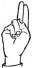 На ћирилици написано ВУКОСАВ РАЦИЋ састоји се из 12 слова [?]. Исписано ћириличном једноручном азбуком за глувонеме: